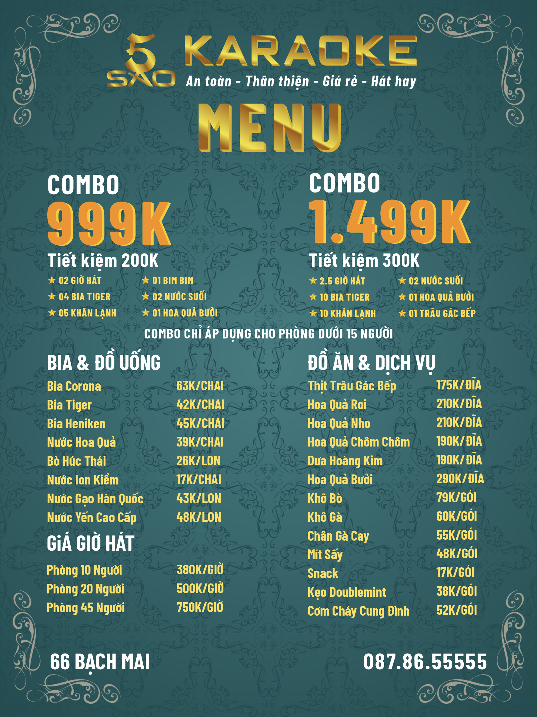 Là cơ sở được mở gần nhất vào năm 2024 trong chuỗi 5 Sao Karaoke, toàn bộ phòng hát của cơ sở 66 Bạch Mai được thiết kế theo phong cách hiện đại, sang trọng với sức chứa từ 10 - 40 người. Mỗi phòng được trang bị đầu hát Youtube với hệ thống âm thanh, ánh sáng hiện đại và thiết kế đạt tiêu chuẩn PCCC.