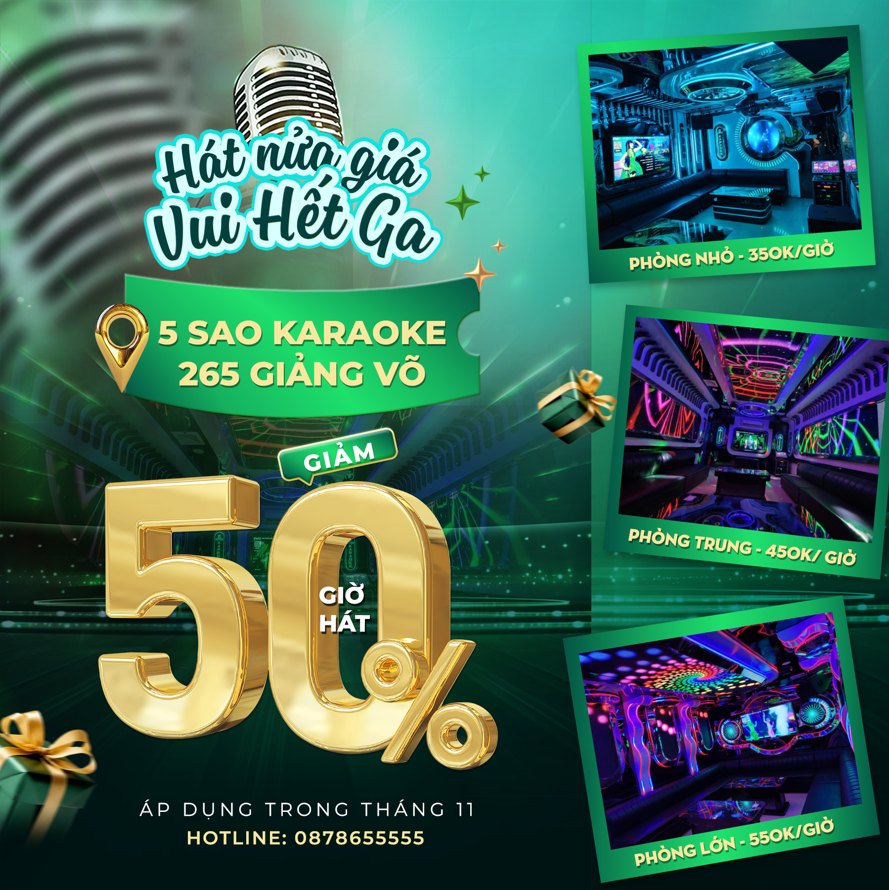 💸 𝐆𝐢𝐚̉𝐦 𝟓𝟎% giá giờ hát – phòng nào cũng xịn, hát nào cũng vui!